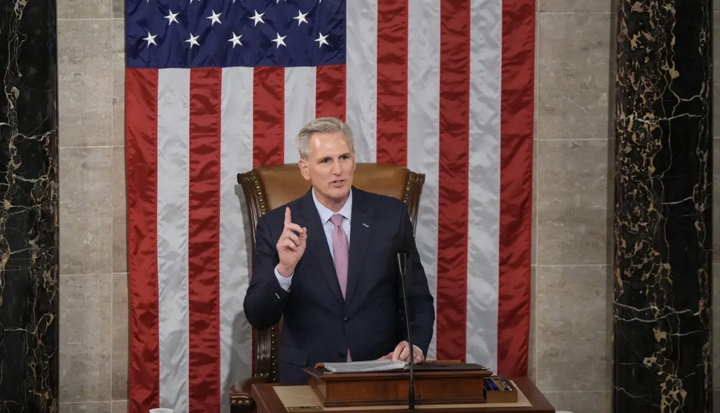 “After 15 Grueling House Speaker Votes, America's Long National Nightmare Can Finally Begin” — the Babylon Bee, which usually isn’t funny.