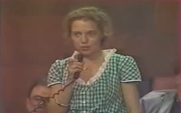 Then… a reporter speaks up. An 18 year old young woman, Tatiana Malinka. She asks a question which is carried live over the Soviet Union: