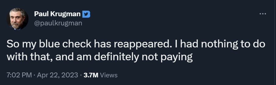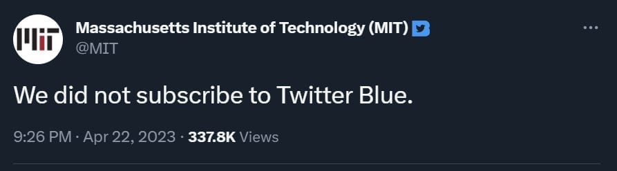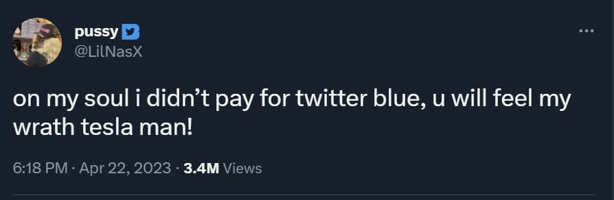 You see, what Musk didn’t realize (or did, but didn’t care) is that for your average famous person, the barrier to subscribing to Twitter Blue wasn’t the $8 fee (I’m fairly certain Lil Nas X can afford $8), it was that with all the “legitimate” verified checks gone, the very act of having that blue check was seen as being one of the Uncool Ones.