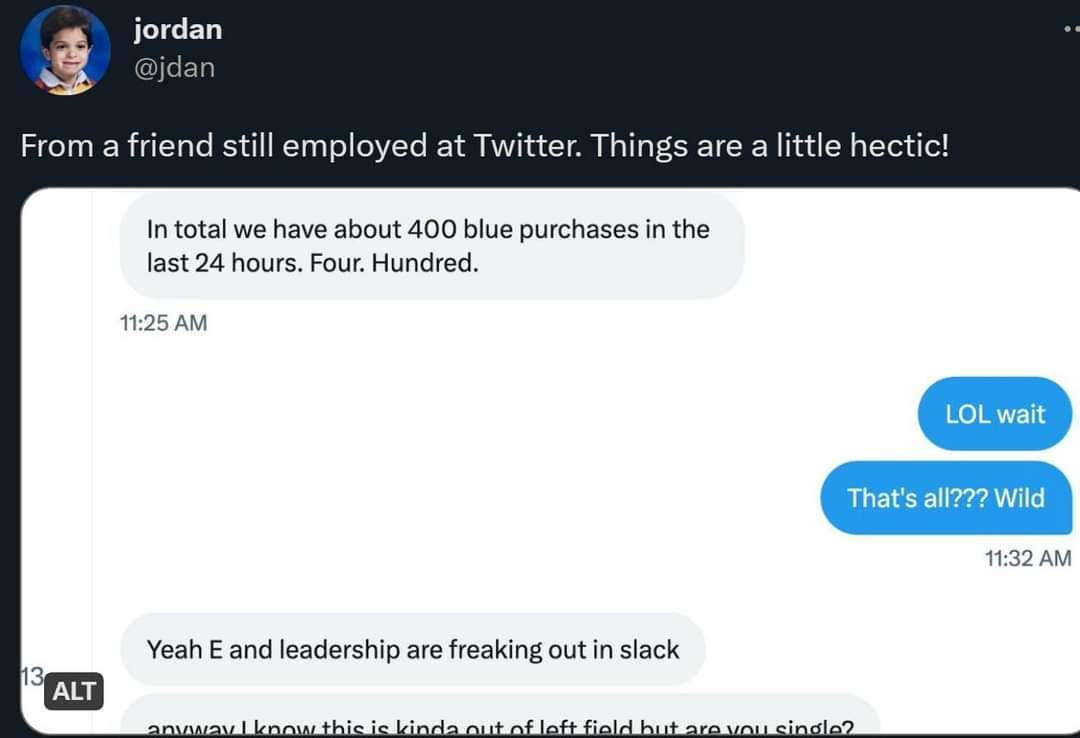 Everyone laughed a bit, some nervously, most not, and moved on, as is the wont of people who for whatever perverse reasons still post on Twitter. The plan was to “encourage” previously verified users to sign up for the Twitter Blue service.