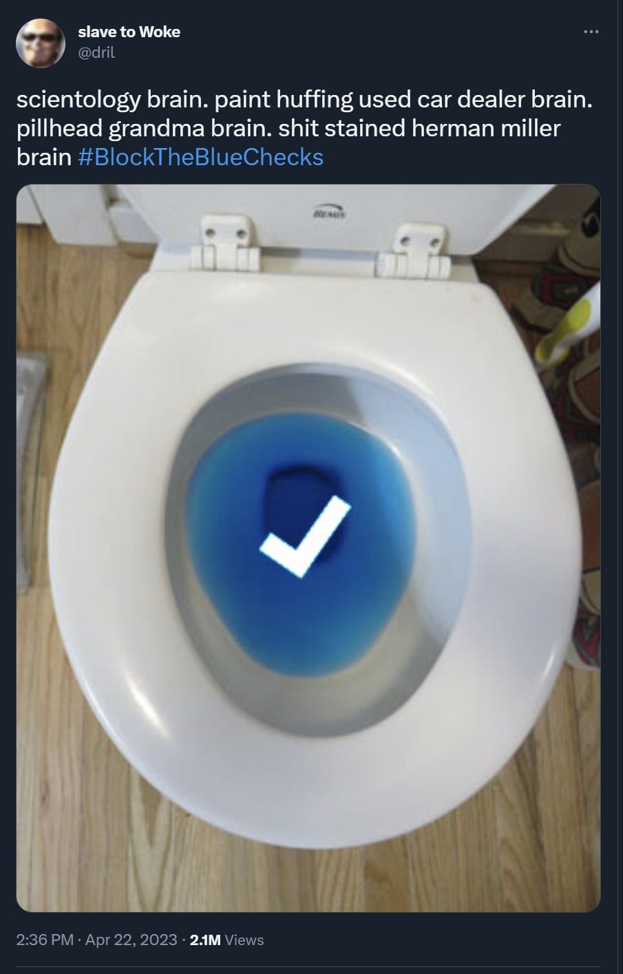 Pretty soon it became very obvious, thanks to Twitter’s new ranking algorithms prioritizing Twitter Blue users, that most Twitter Blue users are, for lack of a better term, raging arseholes.