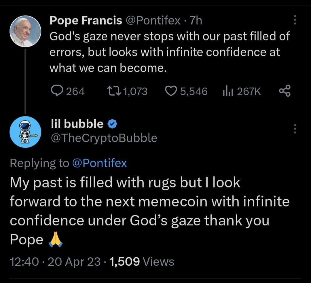 On April 20 (because Musk dearly, dearly loves making juvenile jokes) Twitter finally removed the “verified” badge of previously notable users. This promptly led to, say, a crypto enthusiast named “Lil’ Bubble” being, in Twitter’s eyes, more notable than the Pope.