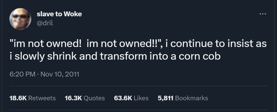 Anyway, as of this writing dril seems to have managed to dodge the Blue Check o’ Shame, so perhaps Musk finally gave up, or went to bed, or gosh, had something better to do. (Surely not that.)