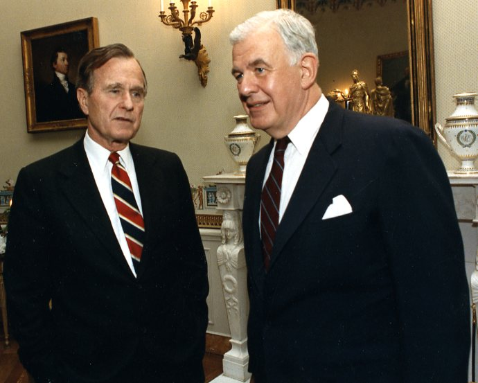 Senate Majority Leader George J. Mitchell, in the closing speech for the resolution, observed that no measure of comparable consequence had been adopted by the Senate without a single absent member since the declaration of war against Imperial Japan on December 8, 1941. Senate Minority Leader Robert Dole of Kansas, the wounded veteran of the 10th Mountain Division and the only senior leader of either party to have suffered combat wounds in the present century, spoke immediately after the Majority Leader. He spoke for less than three minutes. He said: "I would not be standing on this floor today, except for those who served beside me in 1945. They had no resolution. They had a duty. We have today done a small fraction of what they did, and I am not satisfied that we have yet done enough."